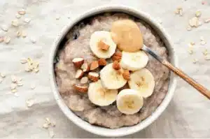Tu dois privilégier des aliments caloriques et faciles à consommer comme des flocons d’avoine, du pain, des œufs ou du beurre de cacahuète.